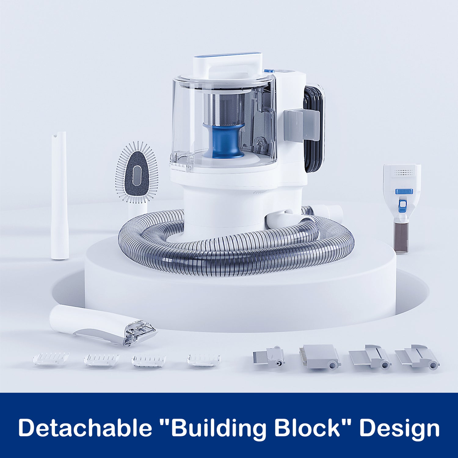 The detachable hose, dustbin, pet grooming kit, clipper kit, crevice nozzle, cleaning brush are highly detachable like building blocks, greatly increase the ease of daily cleaning and maintenance. Still can make it as new by changing accessories even after several years of use.