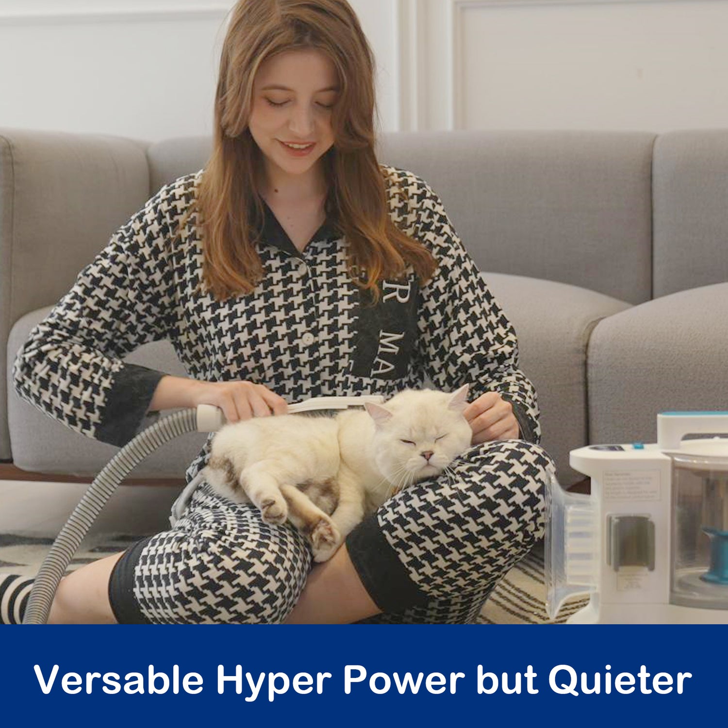 Thanks to the 83'' reinforced detachable hose and 9.8 ft. power cord allow you to keep in a variety of positions with ease and make your pet further away from the motor, more suitable for sensitive or larger pets.